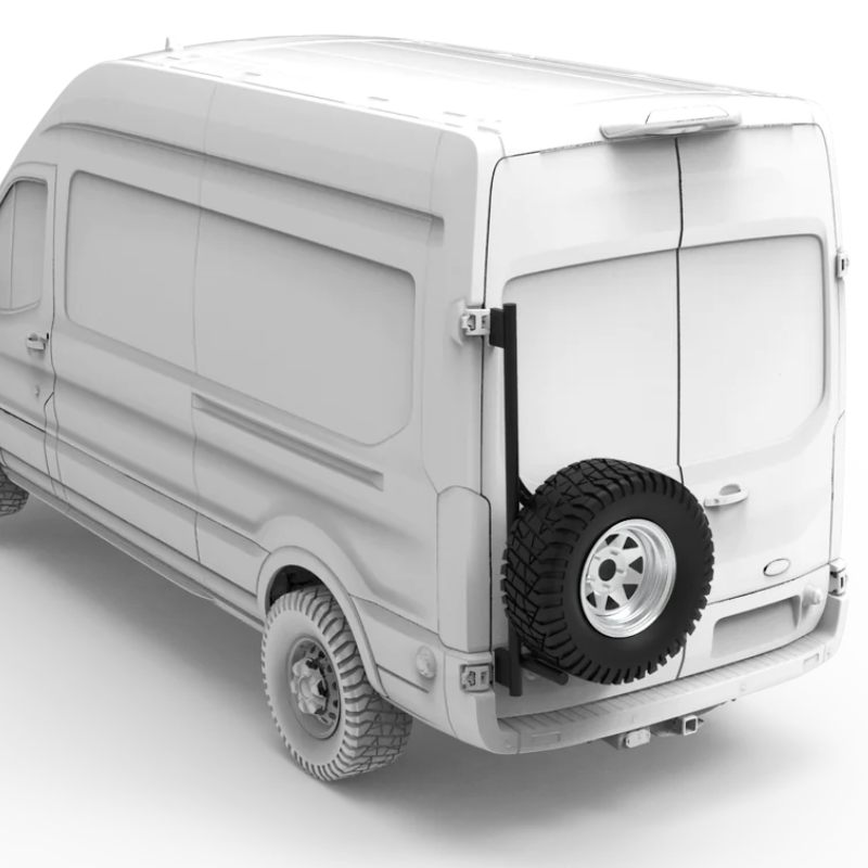 DIY-Friendly Installation: Whether you're a seasoned van DIY enthusiast or a first-time builder, our tire carrier is designed for easy installation. This tire carrier uses the stock hinges. The user-friendly design allows you to enhance your van conversion project without requiring extensive modifications.