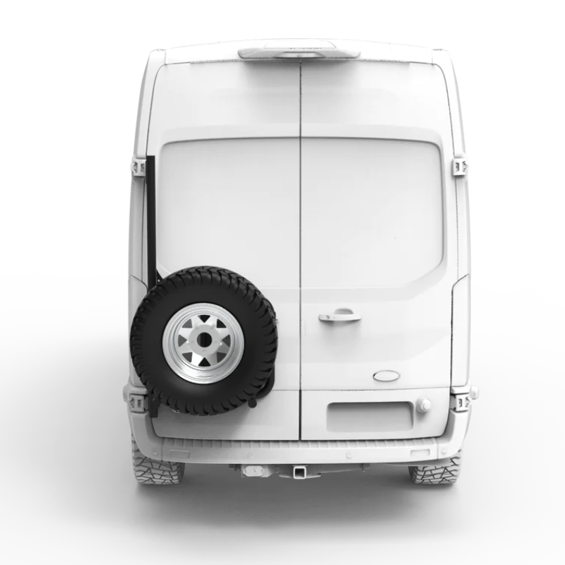 Rover Vans Transit Tire Carrier is a must-have for those seeking functionality and space optimization in their on-the-go lifestyle. Designed with the van life enthusiast in mind, this tire carrier not only ensures that you're well-prepared for unexpected road challenges but also makes the best use of the exterior space on your Transit Van.