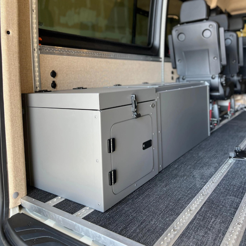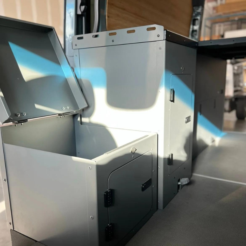 Transit Van Toilet Box – your go-to solution for enhancing the comfort and functionality of your Transit van conversion. The front access door provides easy reach to the flush handle, enhancing user convenience on the road. Crafted in the USA from high-quality, lightweight aluminum, the Lost Hiway Toilet Box guarantees durability and longevity for your travels. Elevate both form and function in your van conversion with this sleek, versatile, and essential component that promises to redefine your on-the-go lifestyle.