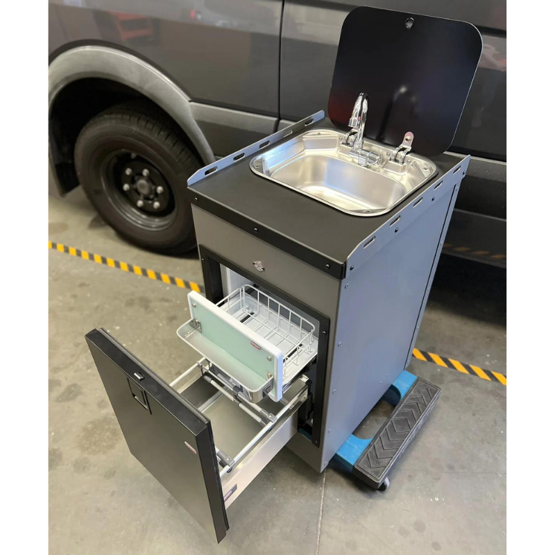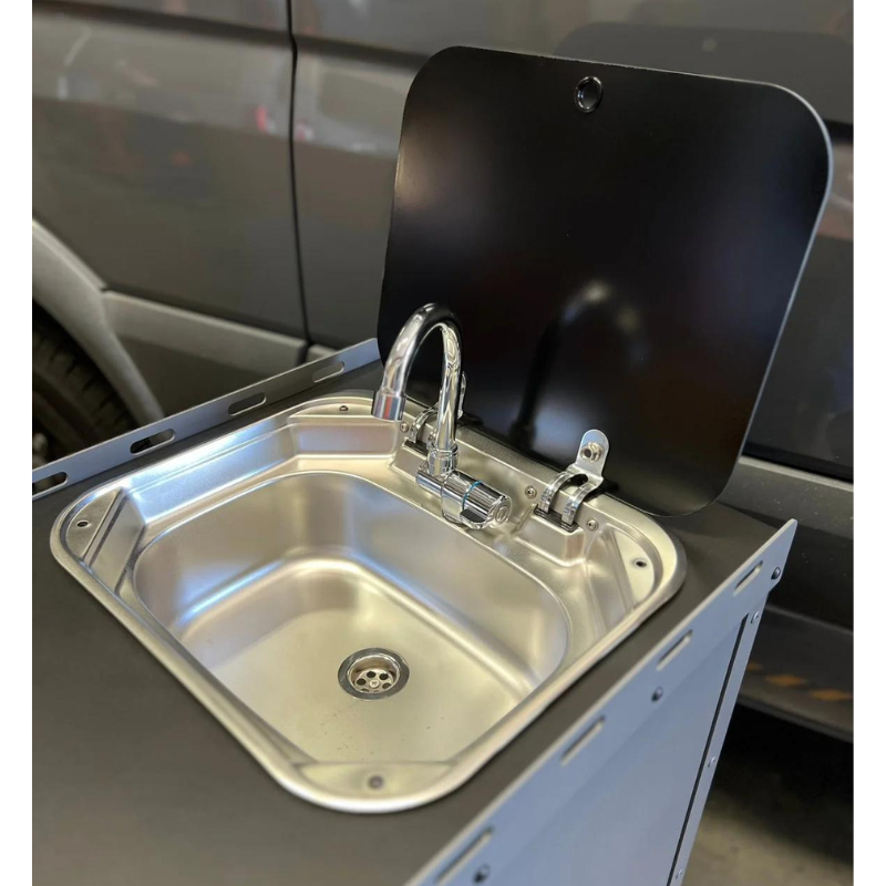 • Compact and Space-Efficient Design: With dimensions of 18" wide x 33" tall x 22" front to back, this Transit van Pedestal Galley maximizes functionality without sacrificing space. It's a space-saving solution that adds both style and practicality to your Transit camper van.