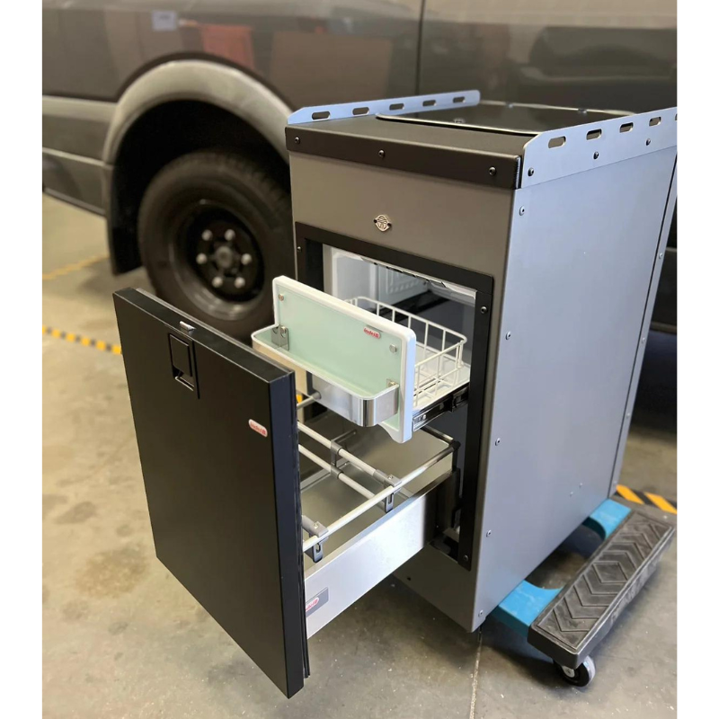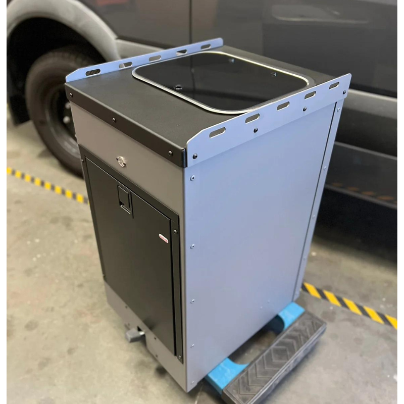 Lost Hi-Way Pedestal Galley with Truck Fridge – an innovative camper van accessory that redefines the standards of on-the-road living. Crafted for durability, functionality, and style, this Pedestal Galley is the perfect addition to your Transit van, regardless of make or model.