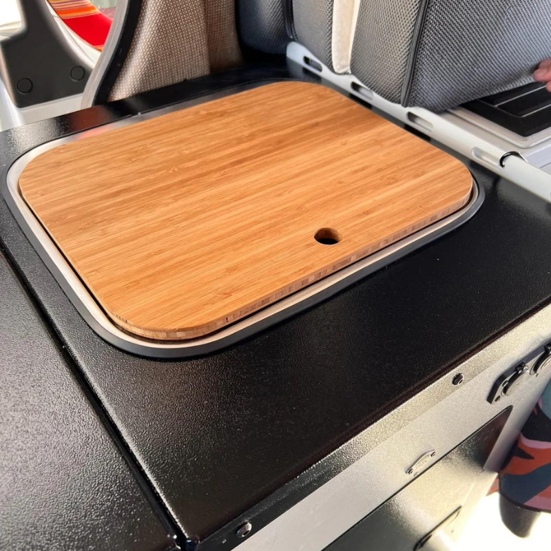 • Optional Bamboo Top: Enhance the aesthetic appeal of your Pedestal Galley with the optional bamboo top. Elevate your van's interior with a touch of natural elegance.